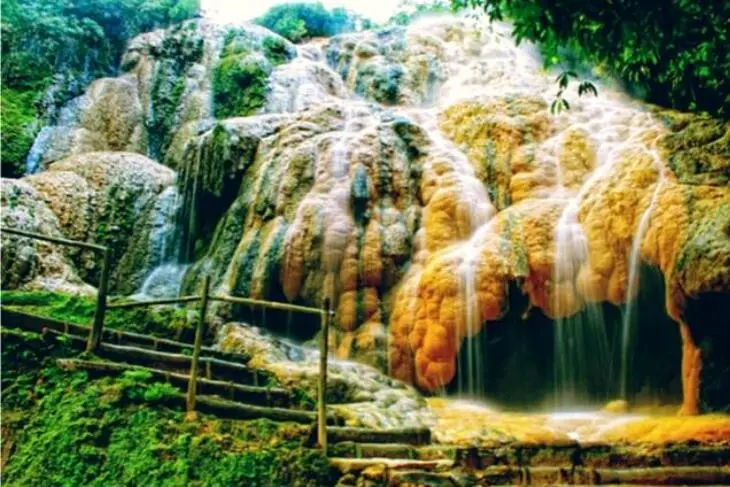 Lanskap gua ini berupa bebatuan alami yang diselimuti lumut. Hasilnya, bebatuannya berwarna kuning kecokelatan dan sangat Instagramable.